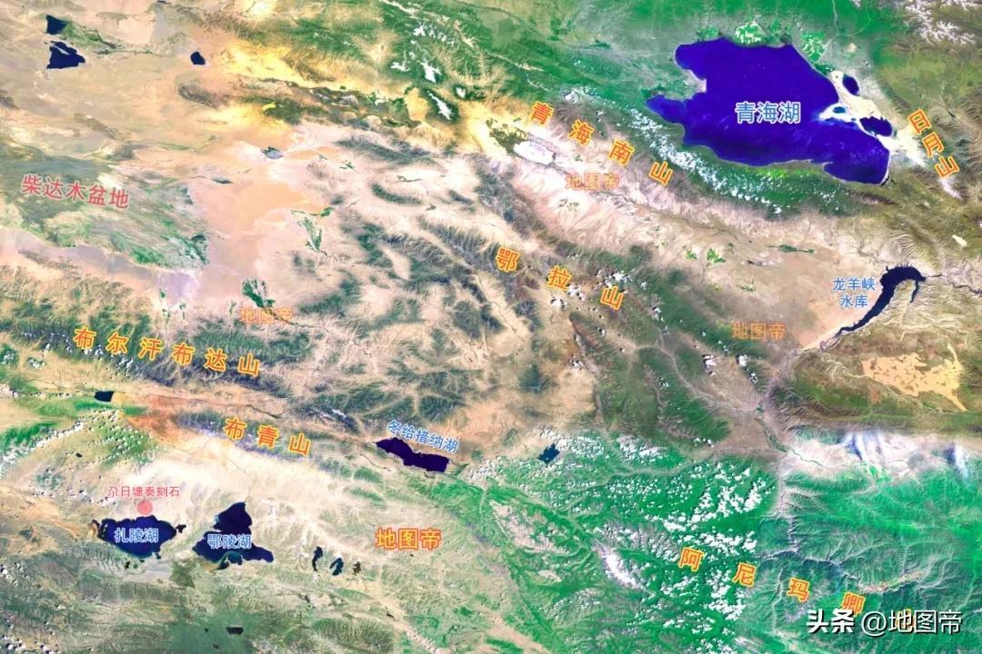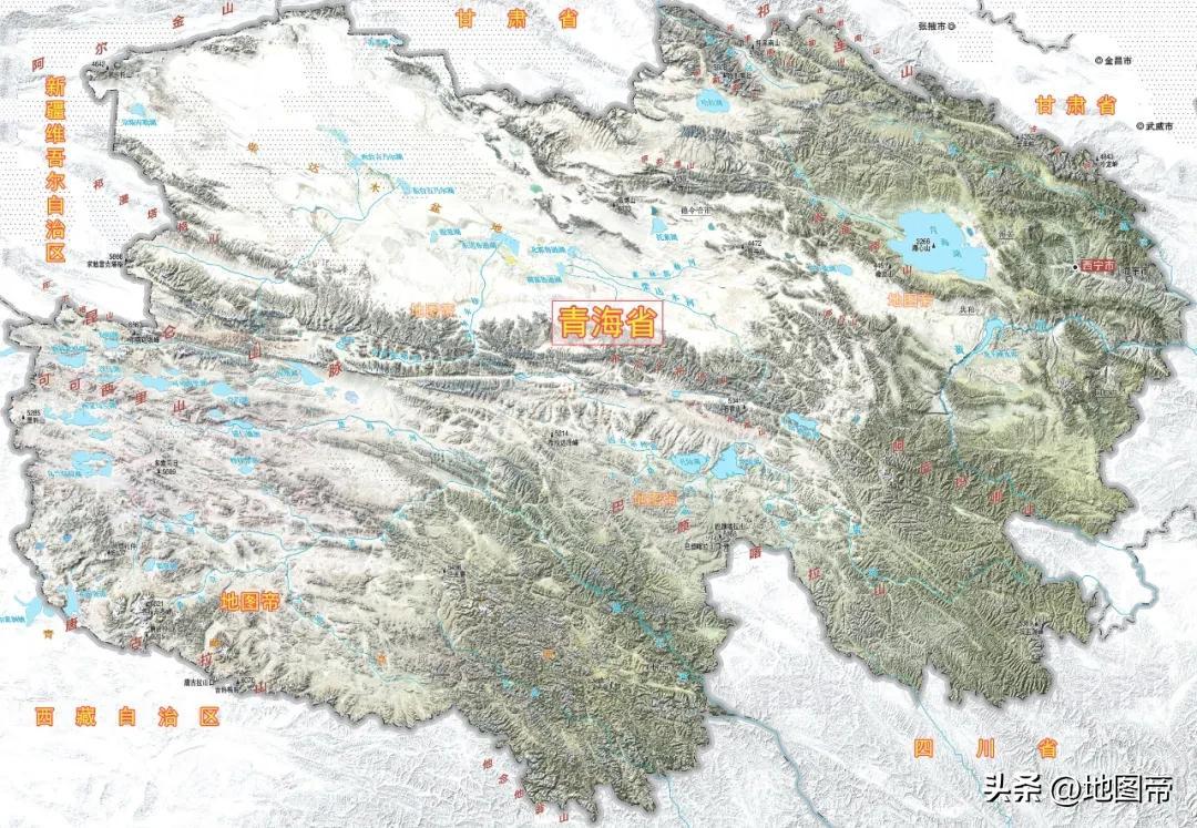 青海地貌複雜多樣,西部爲高原和盆地,東部多山,分佈冰川、戈壁、沙漠、草地、水域、林地、耕地等。青海山脈縱橫,峯巒重疊,自北往南有祁連山脈、崑崙山脈、阿尼瑪卿山、巴顏喀拉山脈、唐古拉山脈等橫亙,平均海拔3000米以上。青海最高峯是西部崑崙山脈的布喀達坂峯,海拔約6860米。