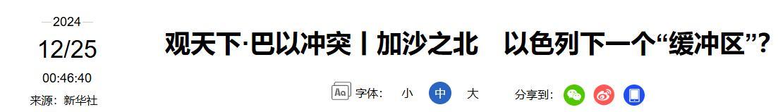 《觀天下·巴以衝突丨加沙之北 以色列下一個“緩衝區”?》2024年12月25日 來源:新華社