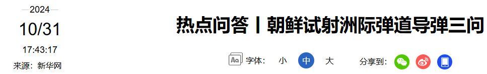 《熱點問答丨朝鮮試射洲際彈道導彈三問》2024年10月31日 來源:新華網