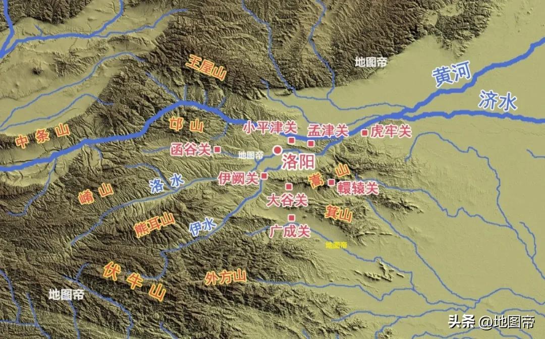 對比一下長安,關中可是四塞之地,利則出攻,不利則入守,此王者之地。再看洛陽所在的河洛地區,羣山環繞,還有黃河天險,東漢修八關拱衛,便可高枕無憂。
