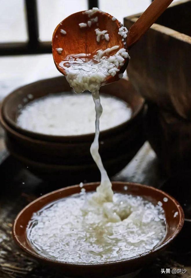 古代釀造酒是通過發酵製成的,酒水中常常漂浮着米糟等各種雜質,有些類似於今天的酒釀湯。