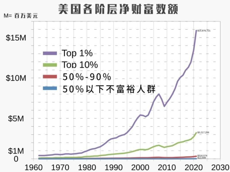 在這種美式自由的洗禮下,美國的社會財富自然會在不斷向頂層富豪集中。