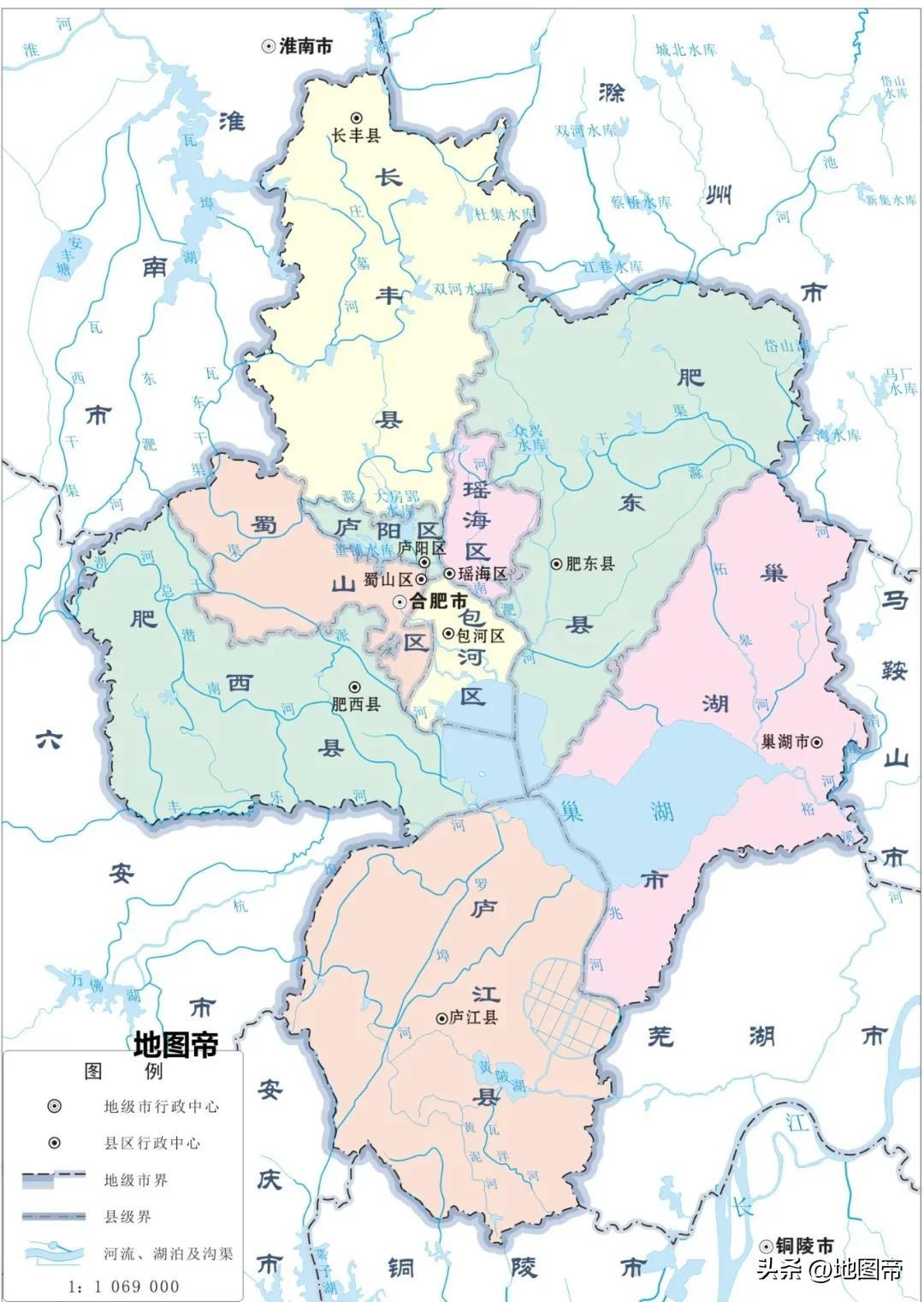 2011年,安徽撤銷地級巢湖市,將其中的居巢區改爲縣級巢湖市,連同廬江縣一起併入合肥。合肥面積增加2082平方千米和2348平方千米,達到1.14萬平方千米。