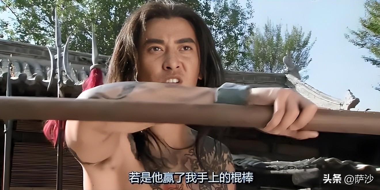 然而,李忠的徒弟史進就慘了,在與王進的交鋒中,僅支撐了兩招便敗下陣來:王進道“恕無禮。”去槍架上拿了一條棒在手裏,來到空地,使個旗鼓。那後生看了一看,拿條棒滾將入來,徑奔王進。王進托地拖了棒便走,那後生掄着棒又趕入來。王進回身,把棒望空地裏劈將下來。那後生見棒劈來,用棒來隔。王進卻不打下來,將棒一掣,卻望後生懷裏直搠將來,只一繳,那後生的棒丟在一邊,撲地望後倒了。王進連忙撇了棒,向前扶住道“休怪,休怪。”