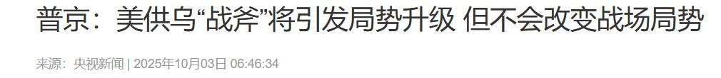 《普京:美供烏“戰斧”將引發局勢升級 但不會改變戰場局勢》2025年10月03日 來源:央視新聞