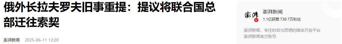1.《俄外長拉夫羅夫舊事重提:提議將聯合國總部遷往索契》2025-06-11 12:20 | 來源:澎湃新聞