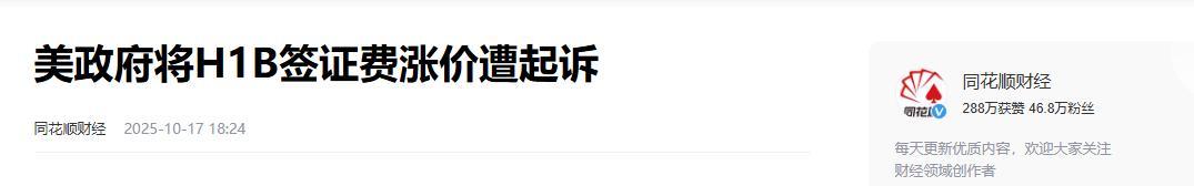 2.《美政府將H1B簽證費漲價遭起訴》2025-10-17 18:24 | 來源:同花順財經