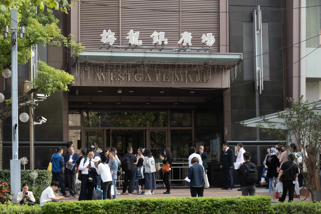 圖| 上海,當日早9時,靜安區梅龍鎮廣場旁的江寧路上,衆多申請美國簽證的民衆排起了長隊
