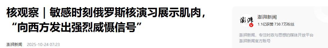 3.《核觀察|敏感時刻俄羅斯核演習展示肌肉,“向西方發出強烈威懾信號”》 2025-10-24 07:23 | 來源:澎湃新聞