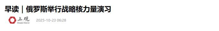 2.《早讀|俄羅斯舉行戰略核力量演習》2025-10-23 06:28 | 來源:上觀新聞