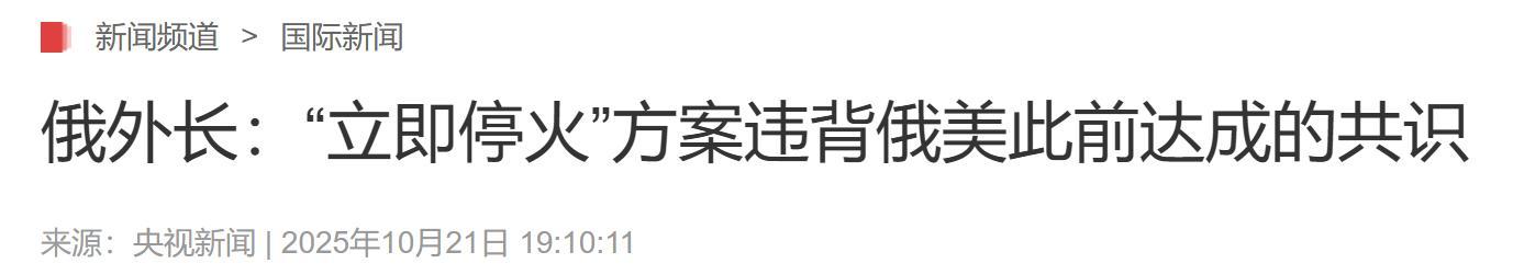 2.《俄外長:“立即停火”方案違背俄美此前達成的共識》2025-10-22 | 來源:央視網