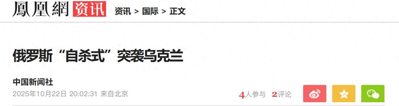 1.《俄羅斯“自殺式”突襲烏克蘭》2025-10-22 | 來源:鳳凰網