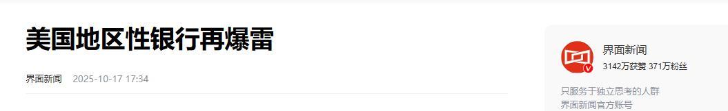 3.《美國地區性銀行再爆雷》2025-10-17 17:34 | 來源:界面新聞