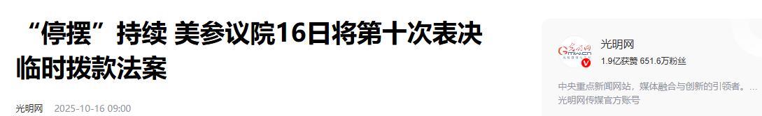 1.《“停擺”持續 美參議院16日將第十次表決臨時撥款法案》2025-10-16 09:00 | 來源:光明網