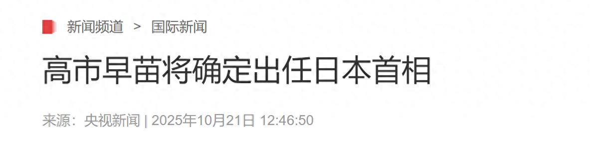 1.《高市早苗將確定出任日本首相》2025-10-21 | 來源:央視網