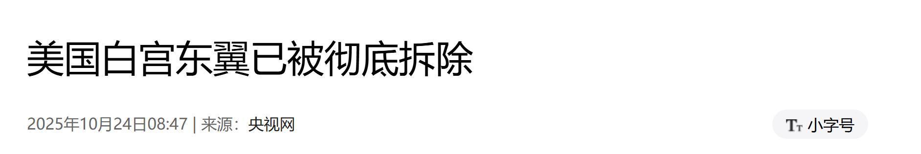 1.《美國白宮東翼已被徹底拆除》2025-10-24 | 來源:人民網