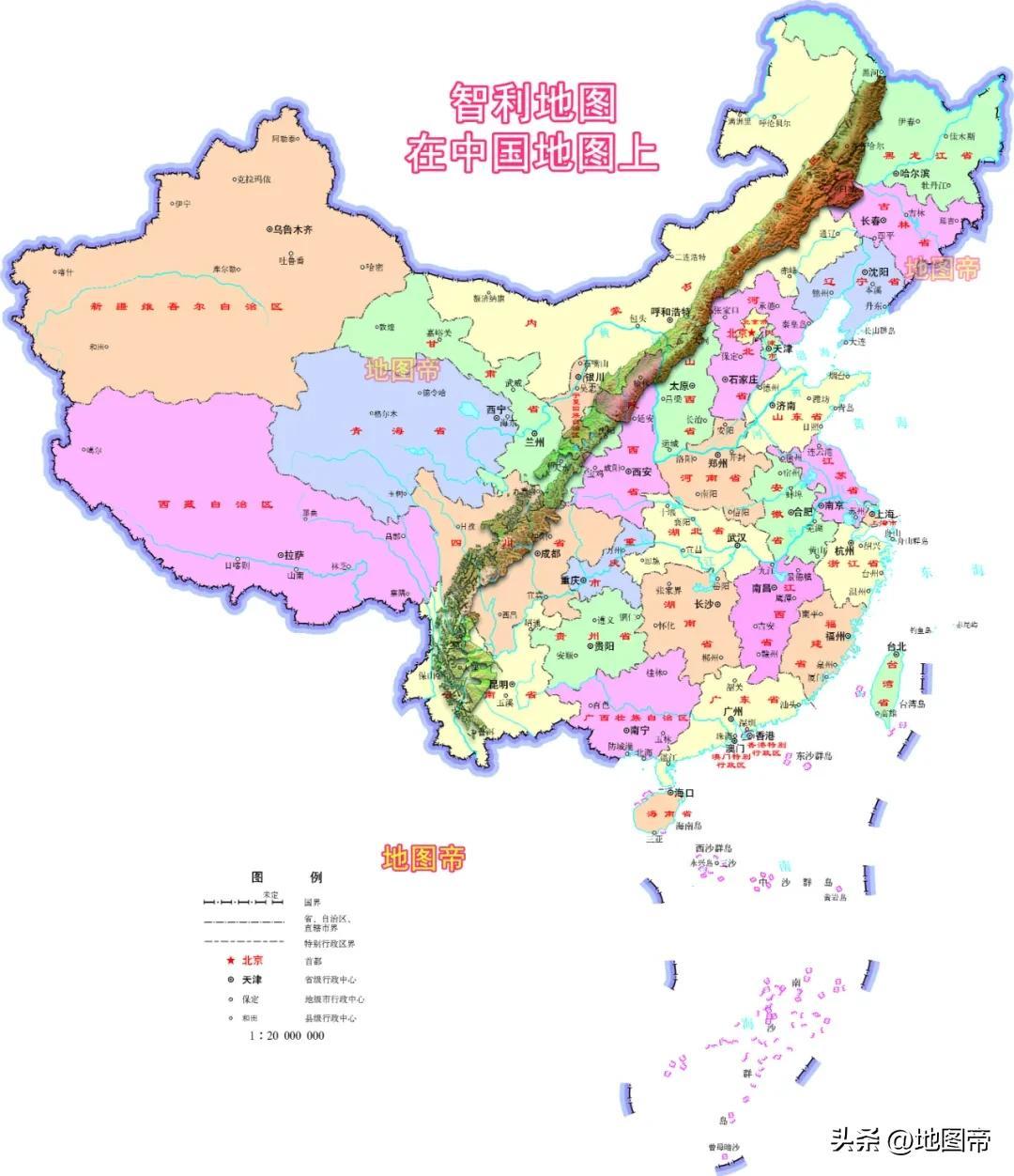 從黑龍江黑河到雲南騰衝斜着拉一條線,有3800多千米,不足智利的4352千米,但智利南部向東南方傾斜,與我國雲南的形狀吻合,也就正好能放下。巧合的是這條線也是我國的人口分界線,又稱“胡煥庸”線,九成以上的人口集中在這條線以東。此外從新疆喀什到浙江和福建沿海,直線距離4500多千米,也超過智利4352千米的長度。