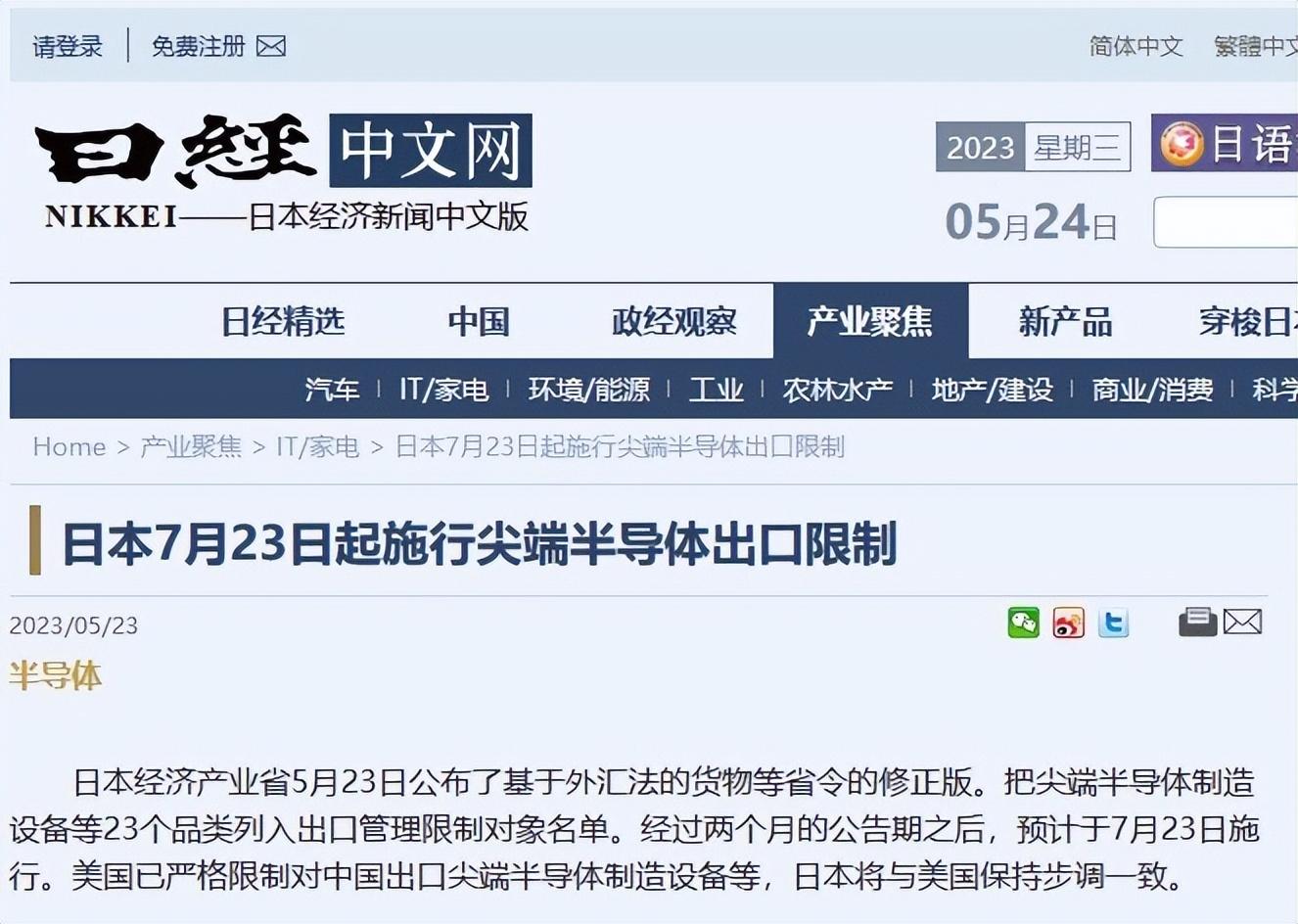 日本半導體決意復甦:拉攏海外投資,組建本土新企,限制設備輸華.澎湃新聞.2023-05-26