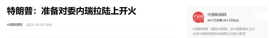 1.《特朗普:準備對委內瑞拉陸上開火》2025-10-24 19:41 | 來源:中國新聞網