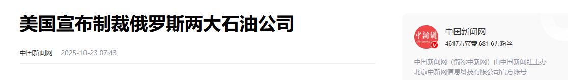 1.《美國宣佈制裁俄羅斯兩大石油公司》2025-10-23 07:43 | 來源:中國新聞網