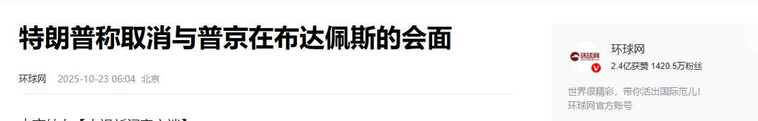2.《特朗普稱取消與普京在布達佩斯的會面》2025-10-23 06:04 | 來源:環球網