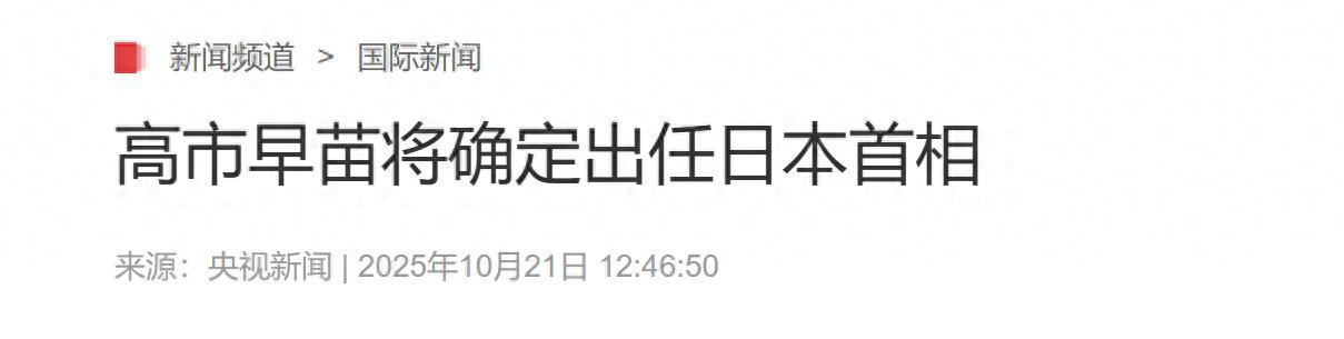 1.《高市早苗將確定出任日本首相》2025-10-21 | 來源:央視網