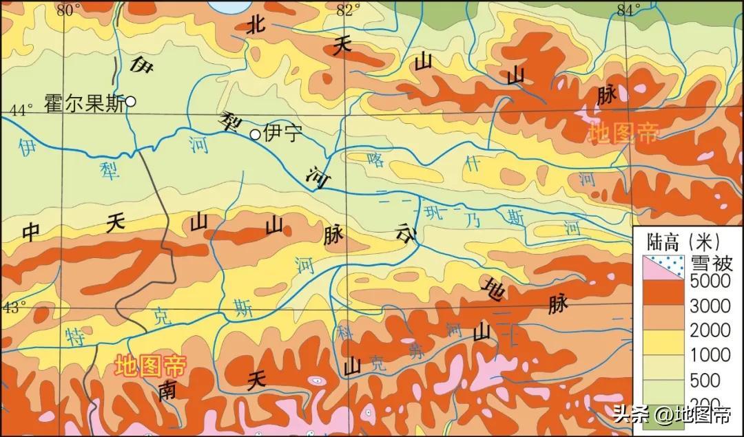 伊犁河盆地也就是伊犁河上中游,在天山山脈北支博羅科努山與南支哈爾克他烏山之間,穿越一系列山地和谷地。伊犁河盆地像個三角形,是個半封閉的地方,北可抵禦來自西伯利亞的乾冷氣流,東可抗拒來自哈密、吐魯番等盆地的乾熱,南可阻止塔里木沙漠風沙的入侵。
