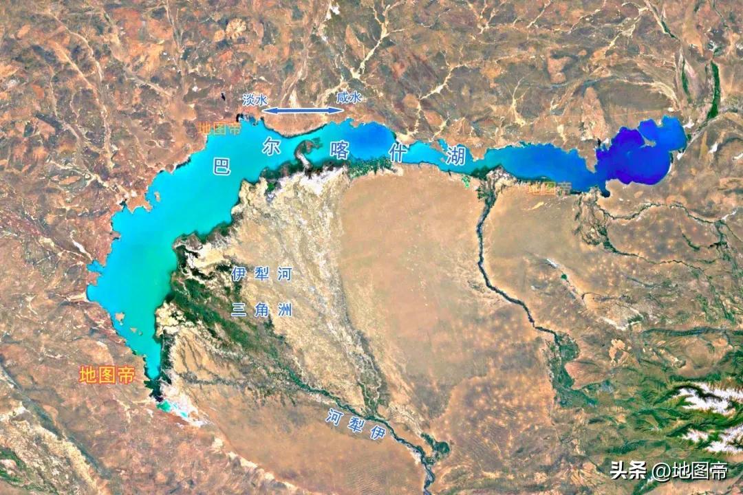伊犁河流入巴爾喀什湖的東南部,形成約8000平方千米的大三角洲,是湖泊、沼澤和植被遍佈的溼地。