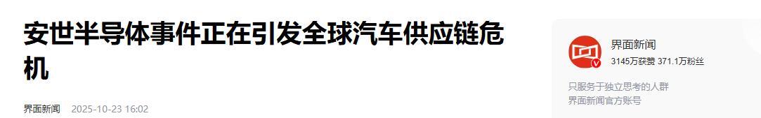 3.《安世半導體事件正在引發全球汽車供應鏈危機》2025-10-23 16:02 | 來源:界面新聞