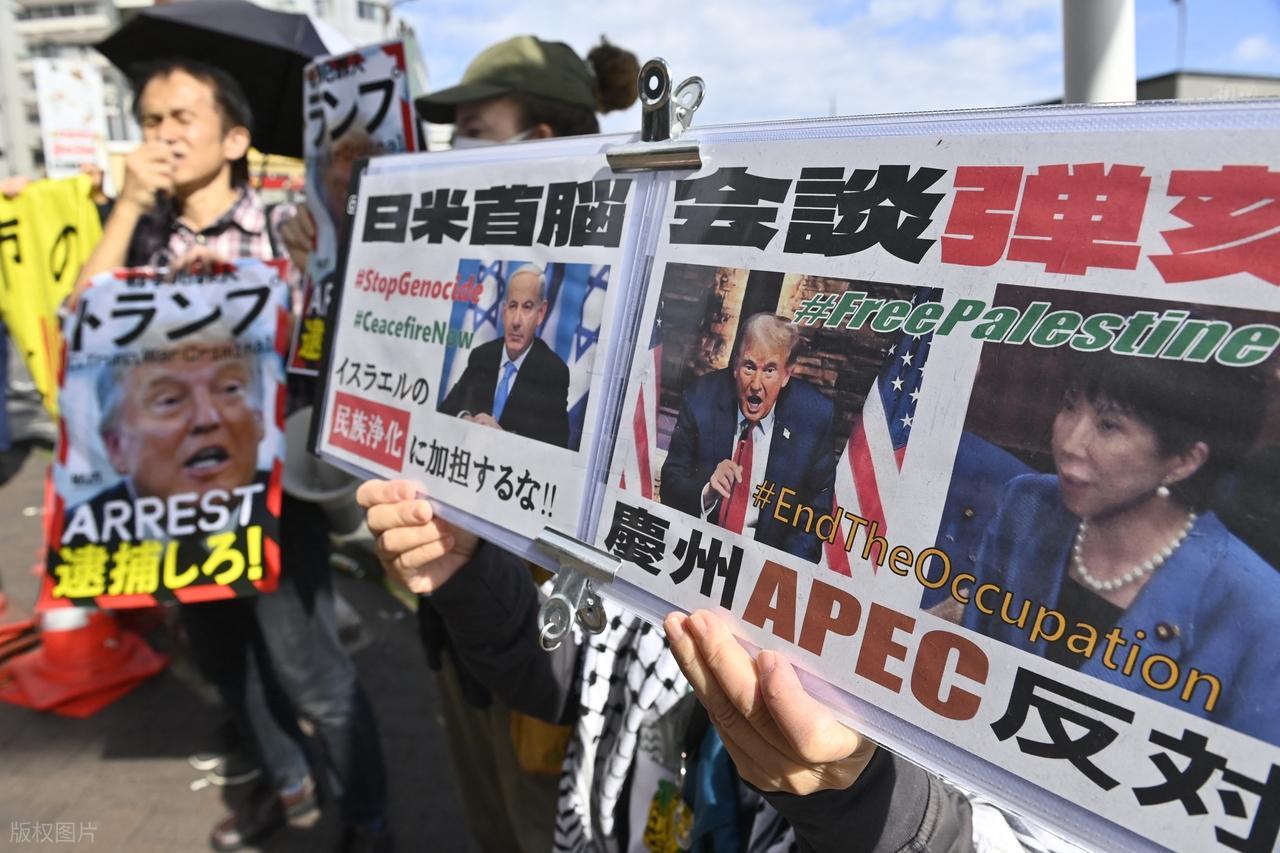 圖| 美國總統特朗普訪問期間,抗議者在首相官邸附近集會,反對其與日本新任首相高市早苗及天皇德仁會晤