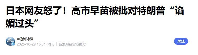 | 來源:澎湃新聞3.《日本網友怒了!高市早苗被批對特朗普“諂媚過頭”》2025-10-29 16:54 | 來源:新浪財經
