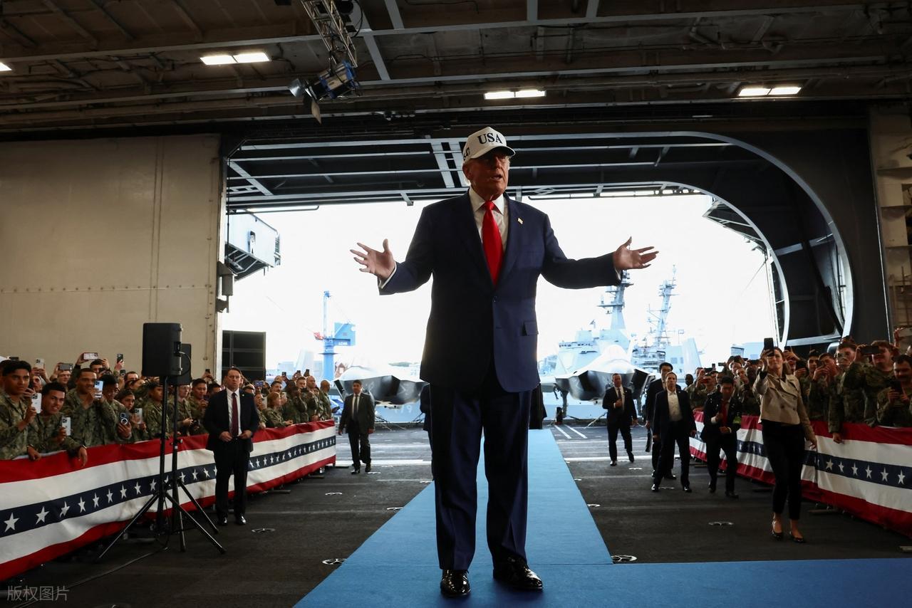 當天晚上,特朗普和高市一同去到美軍橫須賀基地,登上核動力航母喬治·華盛頓號。