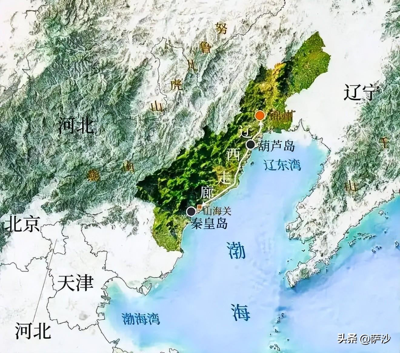 出山海關以後,西方和北方都是連綿的山地,東方則是渤海。宋明時代出現的遼西走廊沿海平坦道路,在漢唐時代還被海水淹沒,是一片海灘和沼澤,根本無法通行。
