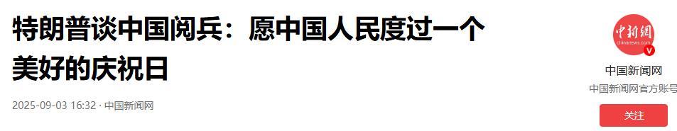1.《特朗普談中國閱兵:願中國人民度過一個美好的慶祝日》2025-09-03 16:32 | 來源:中國新聞網