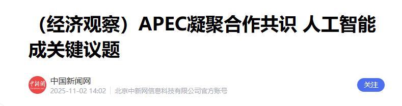 3.《(經濟觀察)APEC凝聚合作共識 人工智能成關鍵議題》2025-11-02 14:02 | 來源:中國新聞網