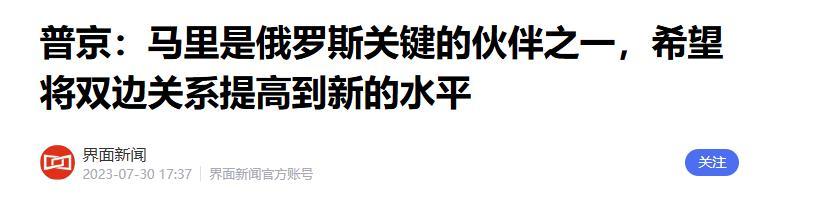 3.《普京:馬裏是俄羅斯關鍵的夥伴之一,希望將雙邊關係提高到新的水平》2023-07-30 17:37