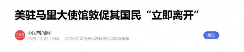 1.《美駐馬裏大使館敦促其國民“立即離開”》2025-11-03 17:04 | 來源:中國新聞網