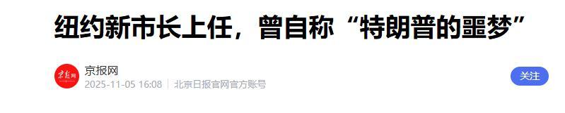 2.《紐約新市長上任,曾自稱“特朗普的噩夢”》2025-11-05 16:08 | 來源:京報網
