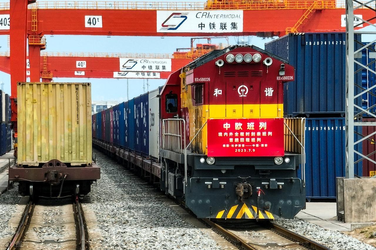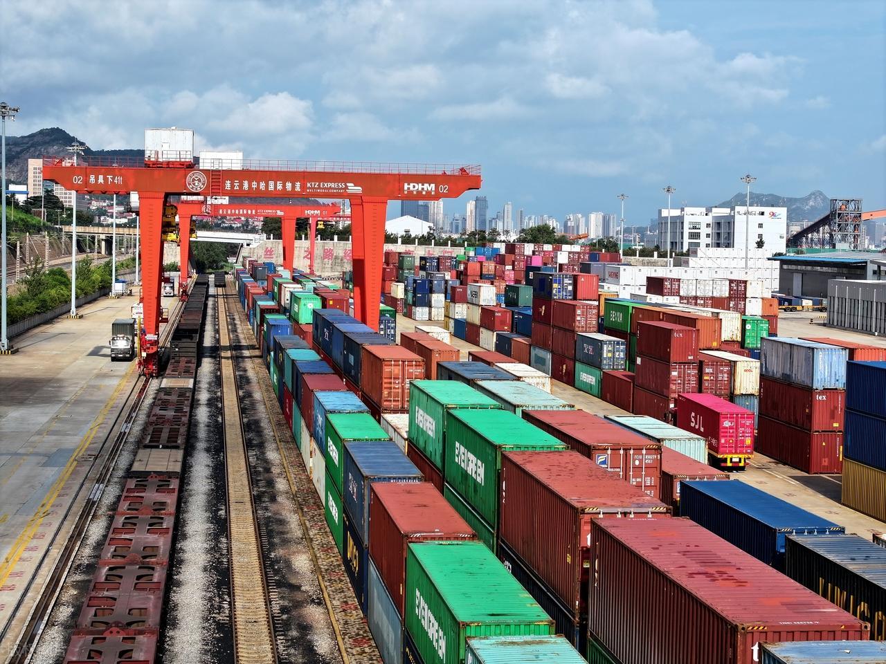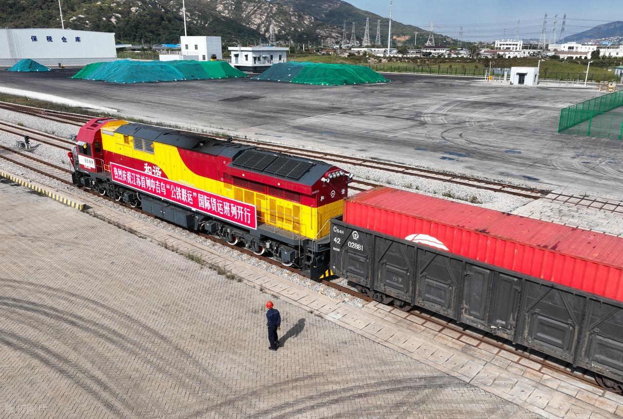 圖| 江蘇首列中吉烏“公鐵聯運”國際貨運班列在上合組織(連雲港)國際物流園鐵路場站發車