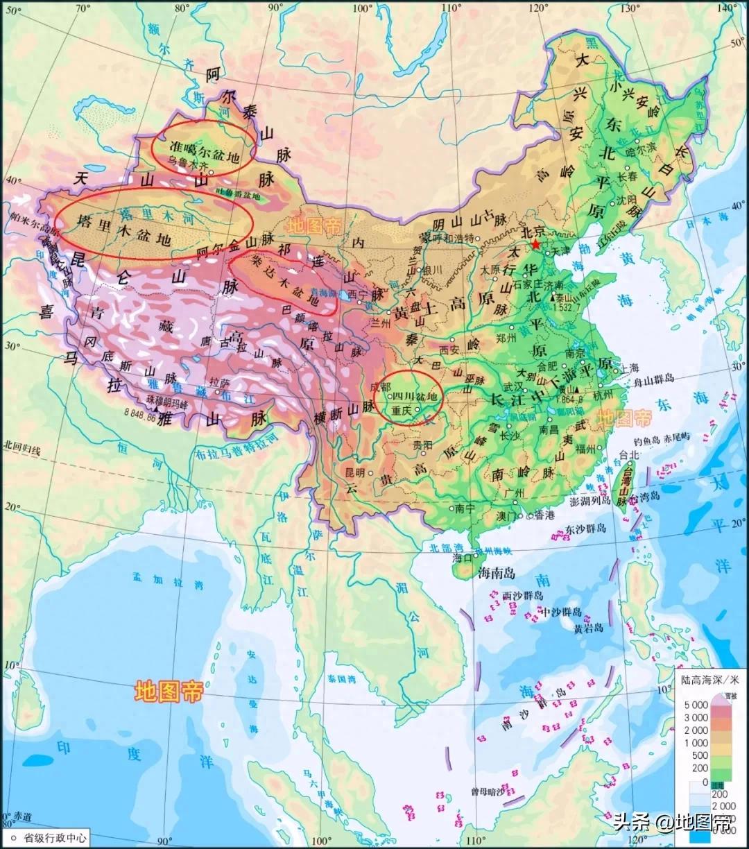 我國四大盆地,從北往南依次是:準噶爾盆地、塔里木盆地、柴達木盆地、四川盆地。其中柴達木盆地海拔最高、日照最強,地貌與四川盆地那種大平原截然不同。
