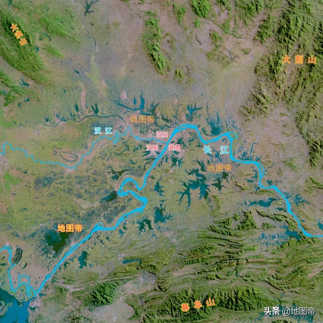 漢江在武漢匯入長江,形成一個丁字水路,將武漢分爲三部分,即武漢三鎮。武昌在長江以東,漢口和漢陽在長江以西,漢江以北是漢口,漢江以南是漢陽。