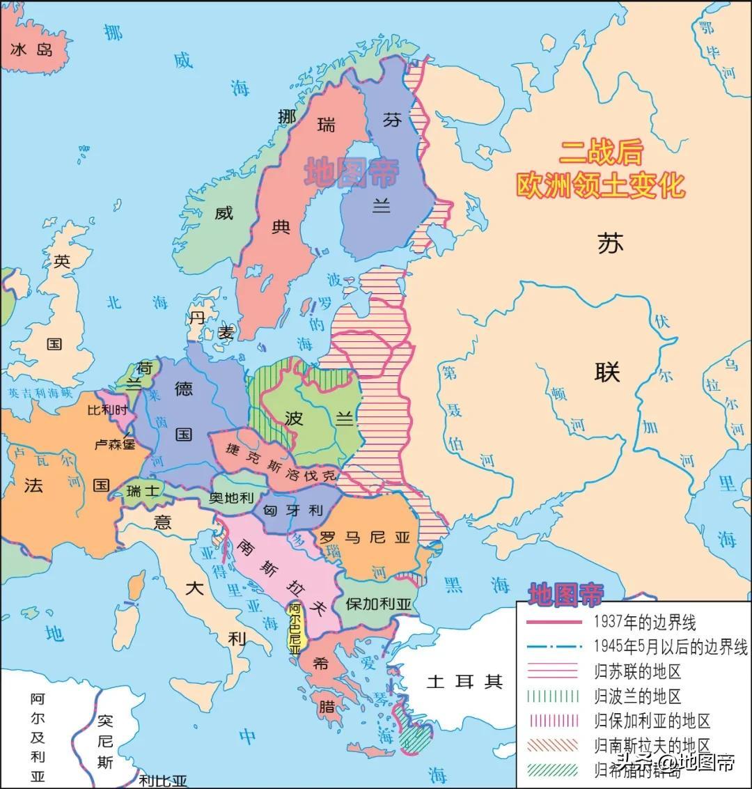 二戰後,蘇聯從德國獲得東普魯士北部(俄羅斯加里寧格勒),西部領土向波蘭方向推進了兩百多千米(主要分佈在今白俄羅斯和烏克蘭)。