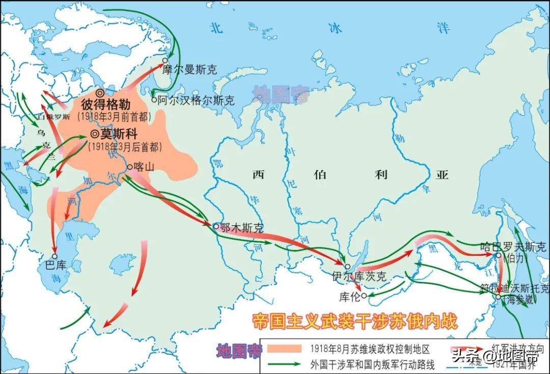 一戰後,英國、法國、日本、波蘭、美國等不滿蘇俄單方面退出對德戰爭,以及沙俄債務等問題,對蘇俄進行了武裝干涉。