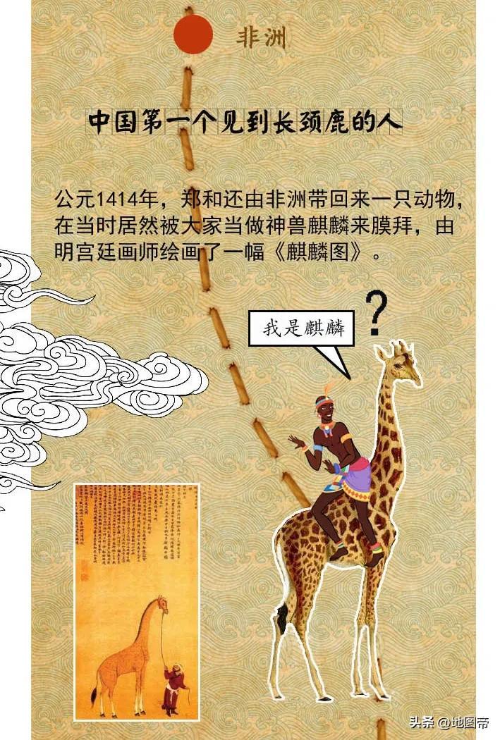 1415年(永樂十三年)七月,44歲的鄭和率艦隊返程,十月,麻林地派使者跟隨艦隊進獻瑞獸麒麟(長頸鹿)。