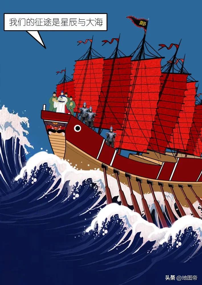 1405年(永樂三年)六月,34歲的鄭和、王景弘等,率艦隊第一次下西洋,從江蘇太倉劉家港出海,依次經過占城(今越南中南部)、爪哇、舊港(今印度尼西亞巨港)、蘇門答臘、南浡裏(在今蘇門答臘島北部)、錫蘭山(今斯里蘭卡)、古裏等地。