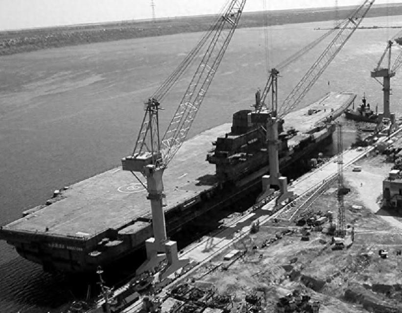 當時,船廠裏有三艘航母在建:大姐“庫茲涅佐夫號”,完工率98%,在解體前夕,俄羅斯海軍顧不上手續,強行將其開回北方軍港;二姐“瓦良格號”,完工率68%;三弟“無量洛夫斯基號”,核動力,完工率僅17%。