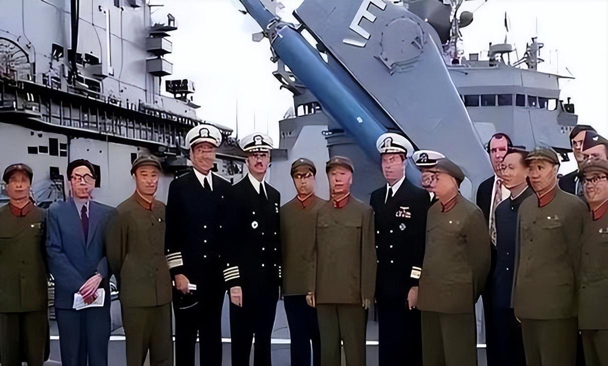 1980年5月,劉華清陪同耿飈副總理訪問美國,第一次踏上了美軍的“小鷹”號航空母艦。那張他踮起腳尖、聚精會神看美軍裝備的照片,刺痛了多少國人!