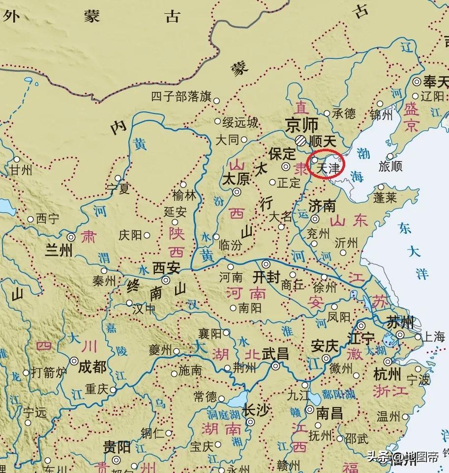 天津作爲四大直轄市之一,知名度並不低,只是存在感相對京滬渝偏弱一些。天津位於北京和渤海之間,是首都北京重要的出海口,從海防角度拱衛京師,自從天津出現在地圖上,一直都是如此。