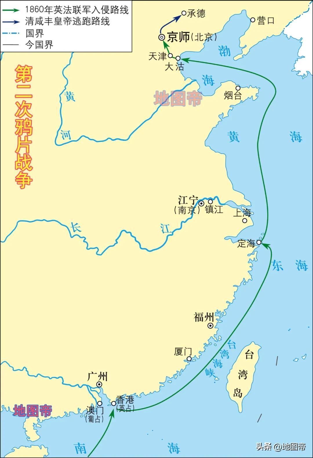 1858年(清文宗咸豐八年),第二次鴉片戰爭爆發,英法聯軍攻破大沽口,從天津登陸,逼迫清朝簽訂《天津條約》。