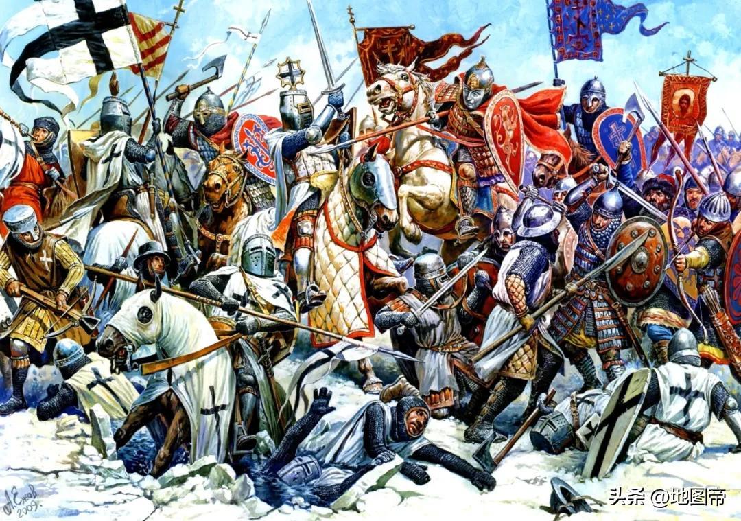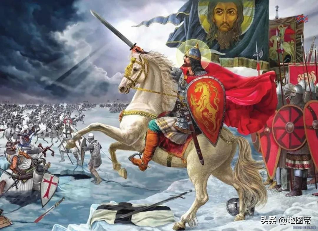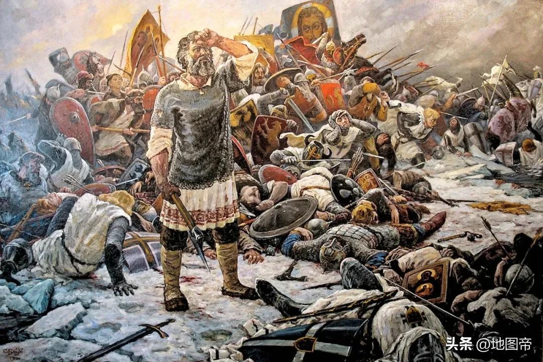 1242年春天,諾夫哥羅德與條頓騎士團在楚德湖的冰面上決戰,史稱冰湖戰役。